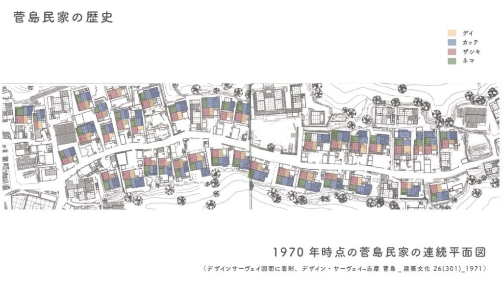 彼らがデータ化してくれるまではっきりと気が付いていなかったのですが、菅島の家の構造には独特の文化があったことを知ることとなりました。