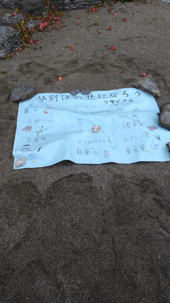そして、集めたゴミで、ゴミの分別を浜辺で学習しました。