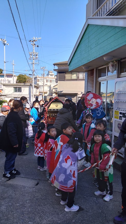役者が会場入りする際には、保育所の子供たちがお神輿をかついでくれました。