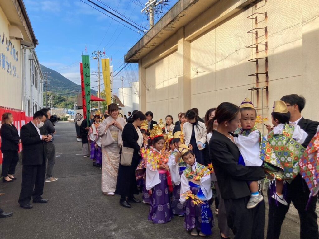 そんな恵まれた青空の中、晋山式のハイライトである菅島の子供たちによる稚児行列が行われました。